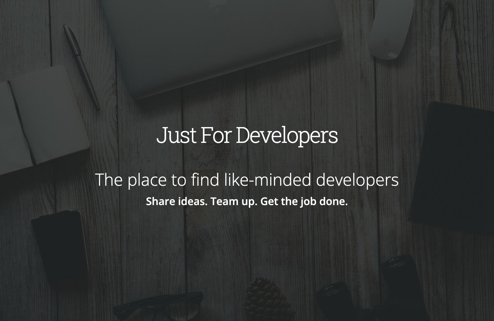 JustForDevelopers.com is a hobby project I have been slowly planning over the last 12 months.My current vision is to build a community platform for developers to hangout, share ideas, host their blog, their personal websites, and find jobs in the industry.